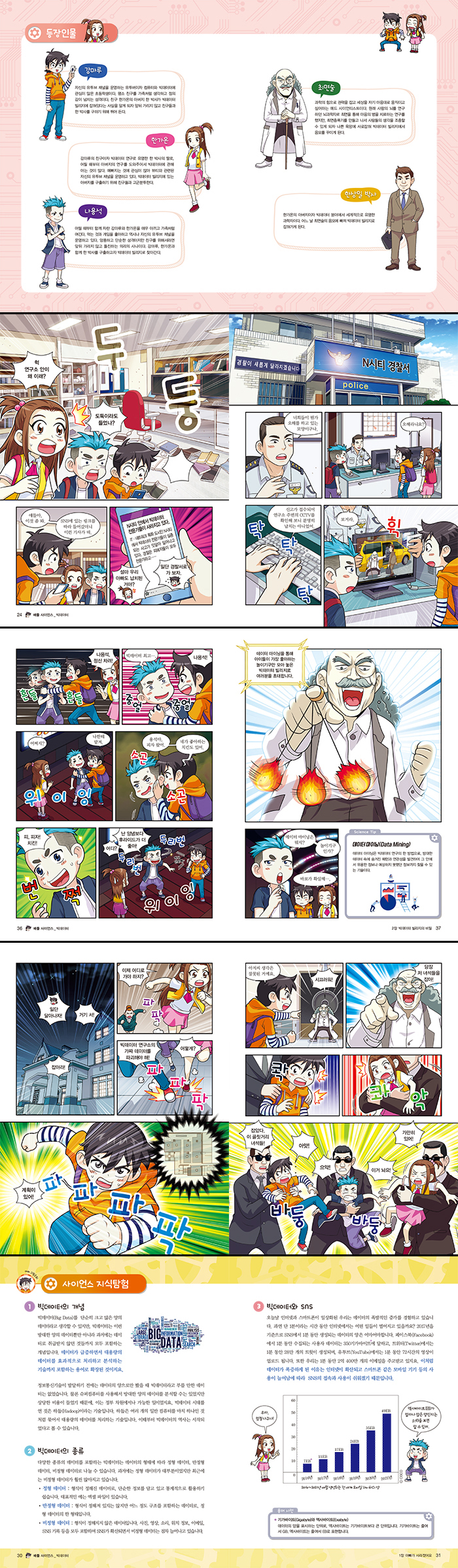 이 책은 다가오는 4차 산업혁명 속에서 화두로 거론되고 있는 ‘빅데이터’를 흥미진진한 만화 스토리를 통해 배워 보는 학습만화입니다. 우리의 미래를 완전히 변화시킬 4차 산업혁명을 선도할 중요한 기반이자 기술인 빅데이터, 이 빅데이터가 무엇인지 정확히 알고 볼수록 기발하고 신기한 빅데이터의 활용 사례부터 미래 전망까지 이 책 한 권으로 살펴보세요.